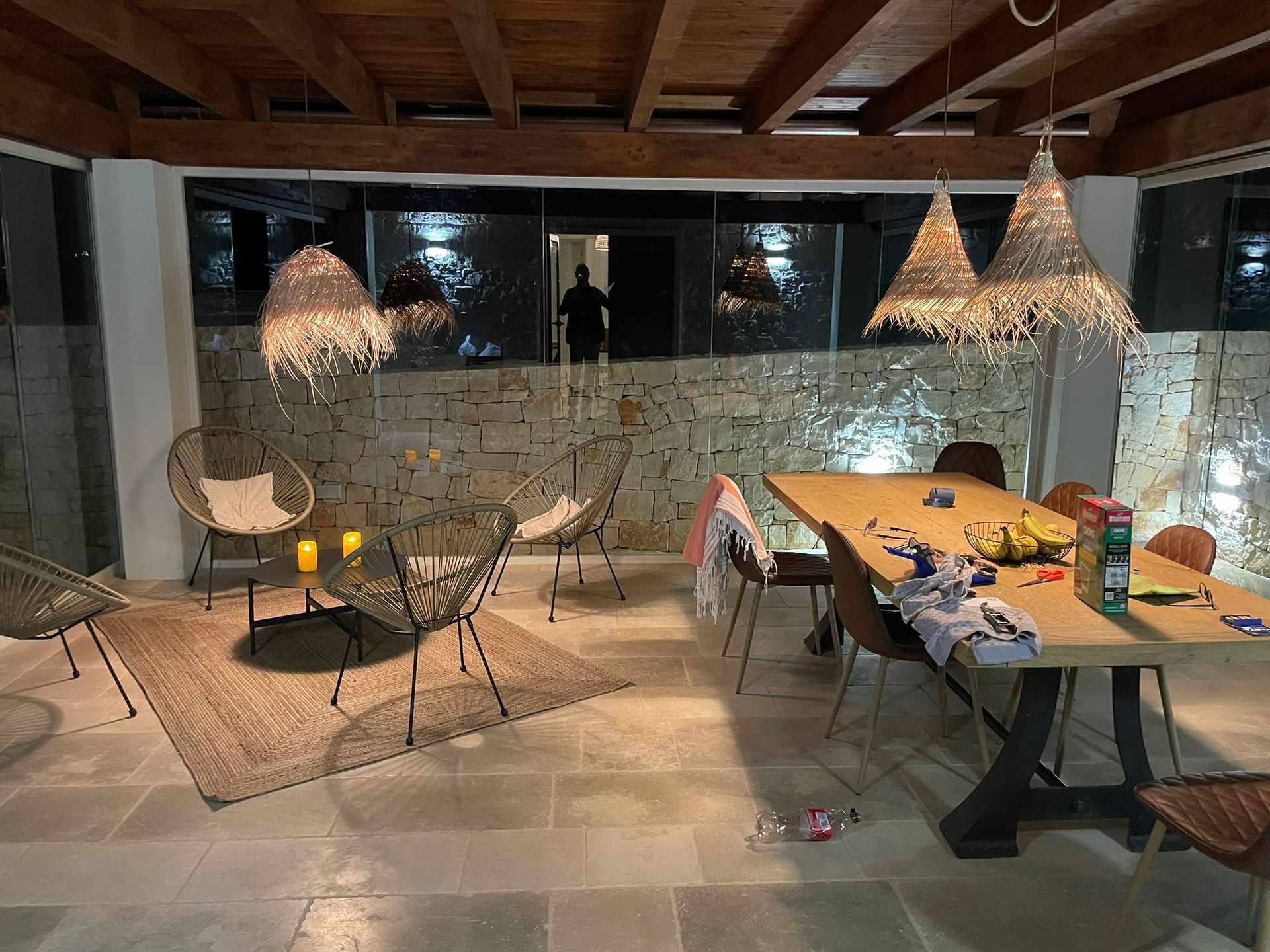 De zomerkeuken is ontworpen om buiten te kunnen dineren en is uitgerust met een barbecue met open haard, een spoelbak, een kleine koelkast en een inductiekookplaat. De keuken bevindt zich op een steenworp afstand van het zwembad en de veranda, zodat u kunt koken terwijl u midden in het buitenleven blijft. Een grote tafel en een loungeset maken de ruimte compleet, ideaal voor een middaggrill of een gezellig diner onder de sterrenhemel. Deze eenvoudige en goed ontworpen ruimte biedt u de mogelijkheid om buiten te koken zonder aan comfort in te boeten, met direct uitzicht op de olijfgaard.