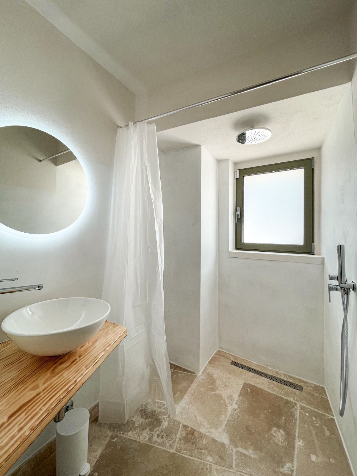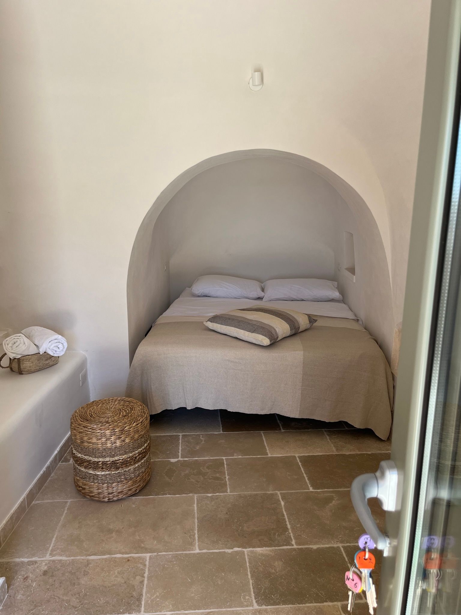 Verspreid over de trulli bieden de vier slaapkamers van Albia elk een intieme en ontspannen sfeer. De dikke stenen muren zorgen voor koelte en stilte, zelfs midden in de zomer. Elke kamer heeft een eigen badkamer met douche en toilet, wat comfort en onafhankelijkheid voor alle gasten garandeert. De bedden zijn bij aankomst opgemaakt met hoogwaardig linnengoed. Opbergruimte, zachte verlichting en doordachte details maken deze cocons compleet, ontworpen om families of vrienden te verwelkomen in een sfeer van rust en gezelligheid.
